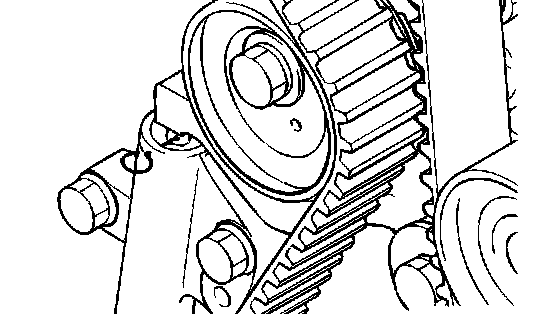 1. Align the timing mark on the camshaft sprocket with the timing mark on the rocker cover.