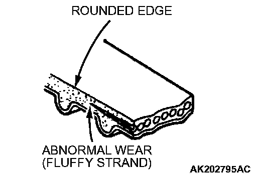6. Abnormal wear of belt sides. Normal wear is indicated if the sides are sharp as if cut by a knife. Abnormal wear is indicated if the sides are ragged.