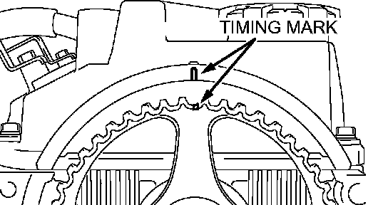 5. Check that timing marks on the sprockets are aligned with the timing marks on the front case.