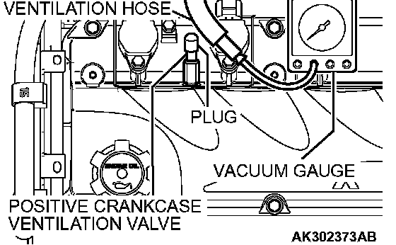 3. Disconnect the ventilation hose from the Positive Crankcase Ventilation (PCV) valve, and connect a vacuum gauge to the ventilation hose.