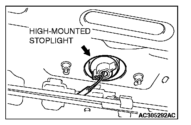 HIGH-MOUNTED STOPLIGHT BULB REPLACEMENTCAUTION: Do not touch bulb surface bare-handed or with dirty gloves. If dirt is attached on glass surface of the bulb, immediately use alcohol or thinner to remove dirt, and install the bulb after well dried.
