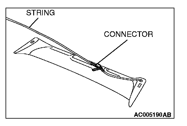 1. Tie a string on the high-mounted stoplight harness (at the connector side).