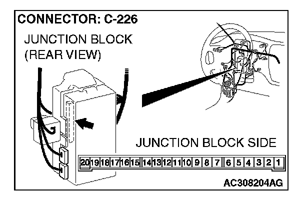 1. Disconnect ETACS-ECU connector C-226 and measure the voltage available at the junction block side of the connector.