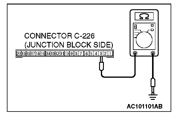 1. Disconnect ETACS-ECU connector C-226 and measure the resistance available at the junction block side of the connector.
