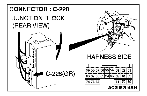 STEP 5. Check ETACS-ECU connector C-228 for loose, corroded or damaged terminals, or terminals pushed back in the connector.