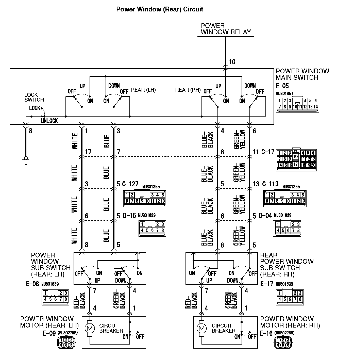 Power Window (Rear) Circuit: