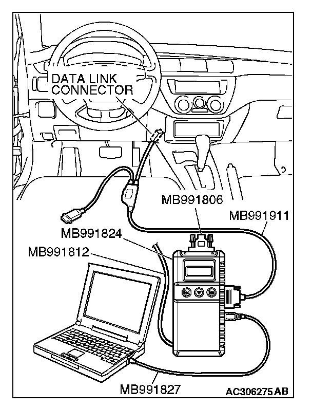 1. Connect scan tool MB991958 to the data link connector.
