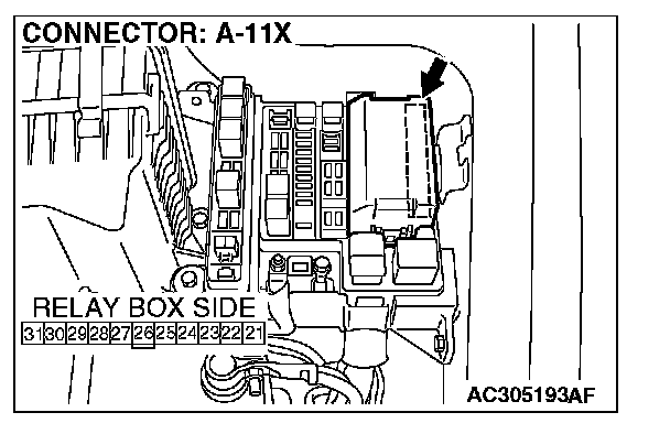 STEP 7. Check the front-ECU connector A-11X for loose, corroded or damaged terminals, or terminals pushed back in the connector.