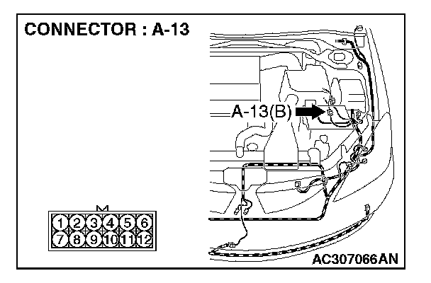 NOTE: Also check intermediate connector A-13 for loose, corroded, or damaged terminals, or terminals pushed back in the connector. If intermediate connector A-13 is damaged, repair or replace the damaged component(s) as described in Harness Connector Inspection.