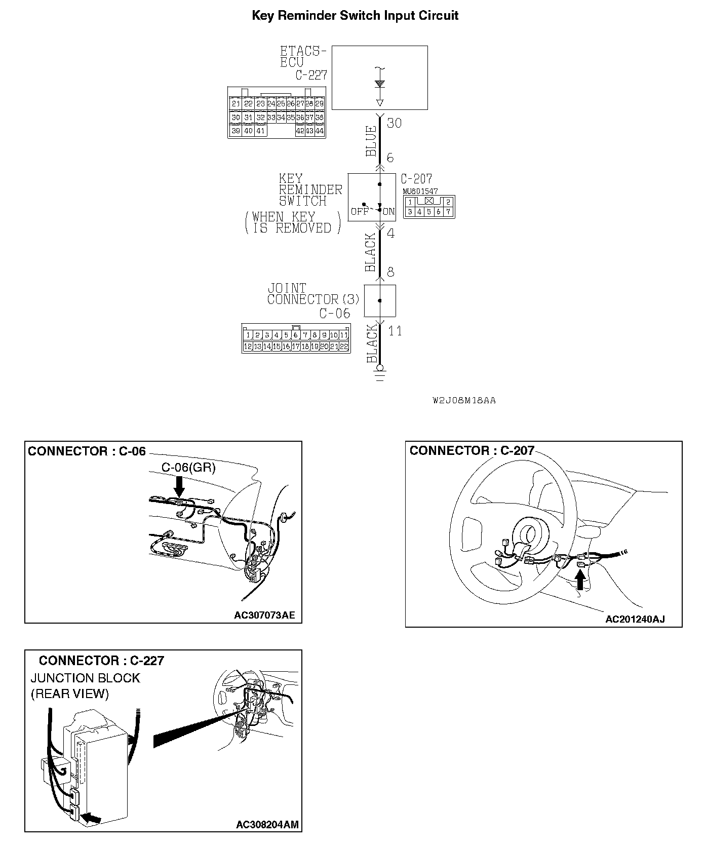 STEP 6. Check the wiring harness between key reminder switch connector C-207 (terminal 6) and ETACS-ECU connector C-227 (terminal 30).