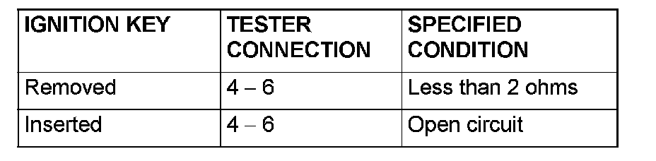 2. Check for continuity between key reminder switch connector C-207 terminal 4 and each of the other terminals as well as terminal 6 and each of the other terminals.