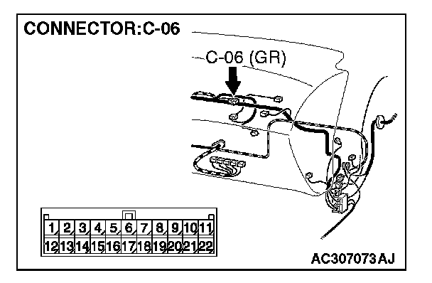 NOTE: Also check joint connector C-06 for loose, corroded, or damaged terminals, or terminals pushed back in the connector. If joint connector C-06 is damaged, repair or replace the damaged component(s) as described in Harness Connector Inspection.