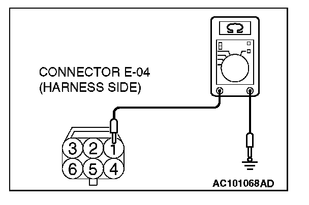 STEP 3. Check the ground circuit to the driver's door lock actuator switch. Measure the resistance at driver's door lock actuator switch connector E-04.