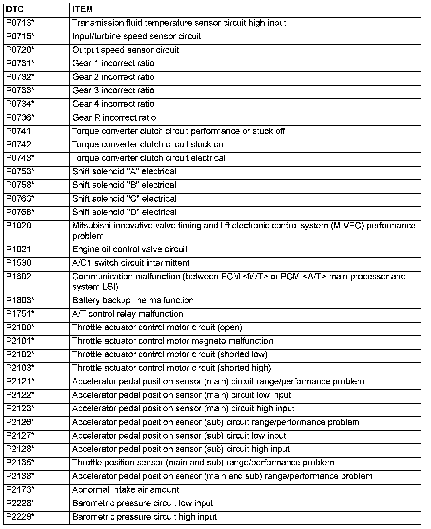 P0204 - P0712:
