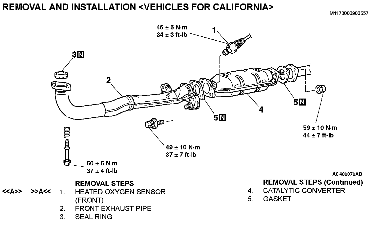 REMOVAL AND INSTALLATIONRefer to the removal and installation of catalytic converter because it is integrated in the exhaust manifold and the front exhaust pipe.