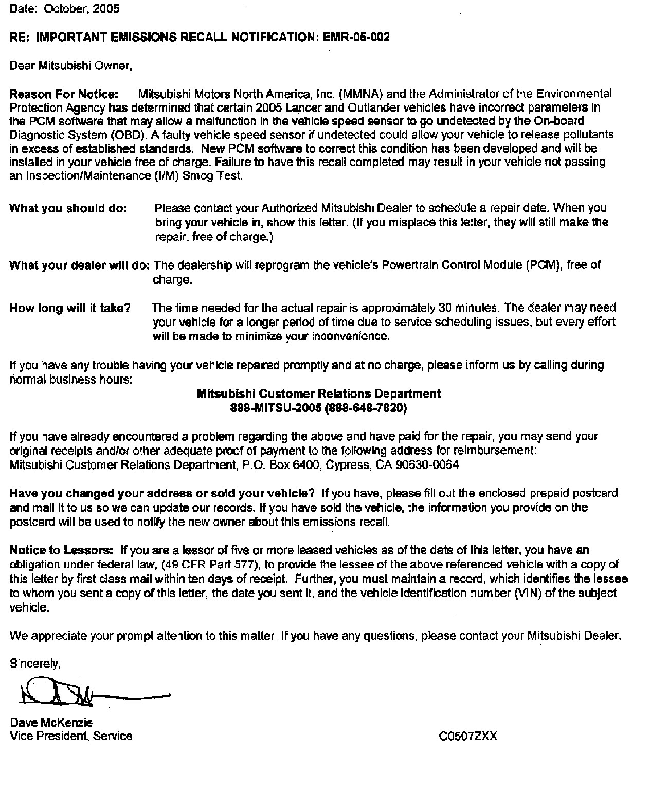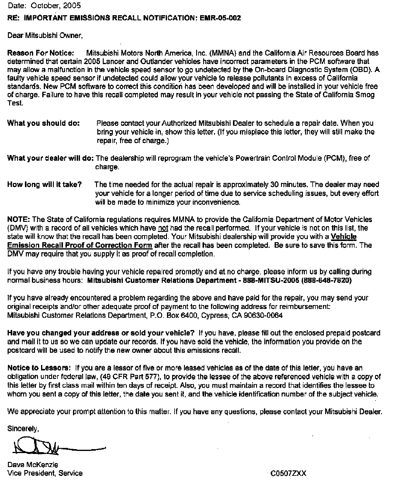 Recall - PCM Reprograming for VSS/OBD Concerns