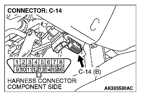 STEP 1. Measure the power supply voltage at data link connector C-14.