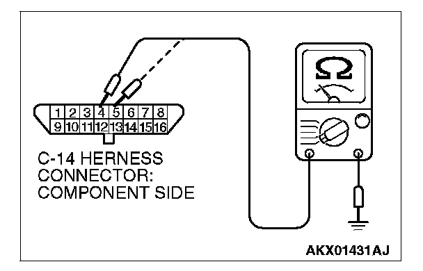 NO: Repair harness wire between data link connector C-14 (terminals No.4, No.5) and ground because of open circuit or harness damage. Then confirm that the malfunction symptom is eliminated.