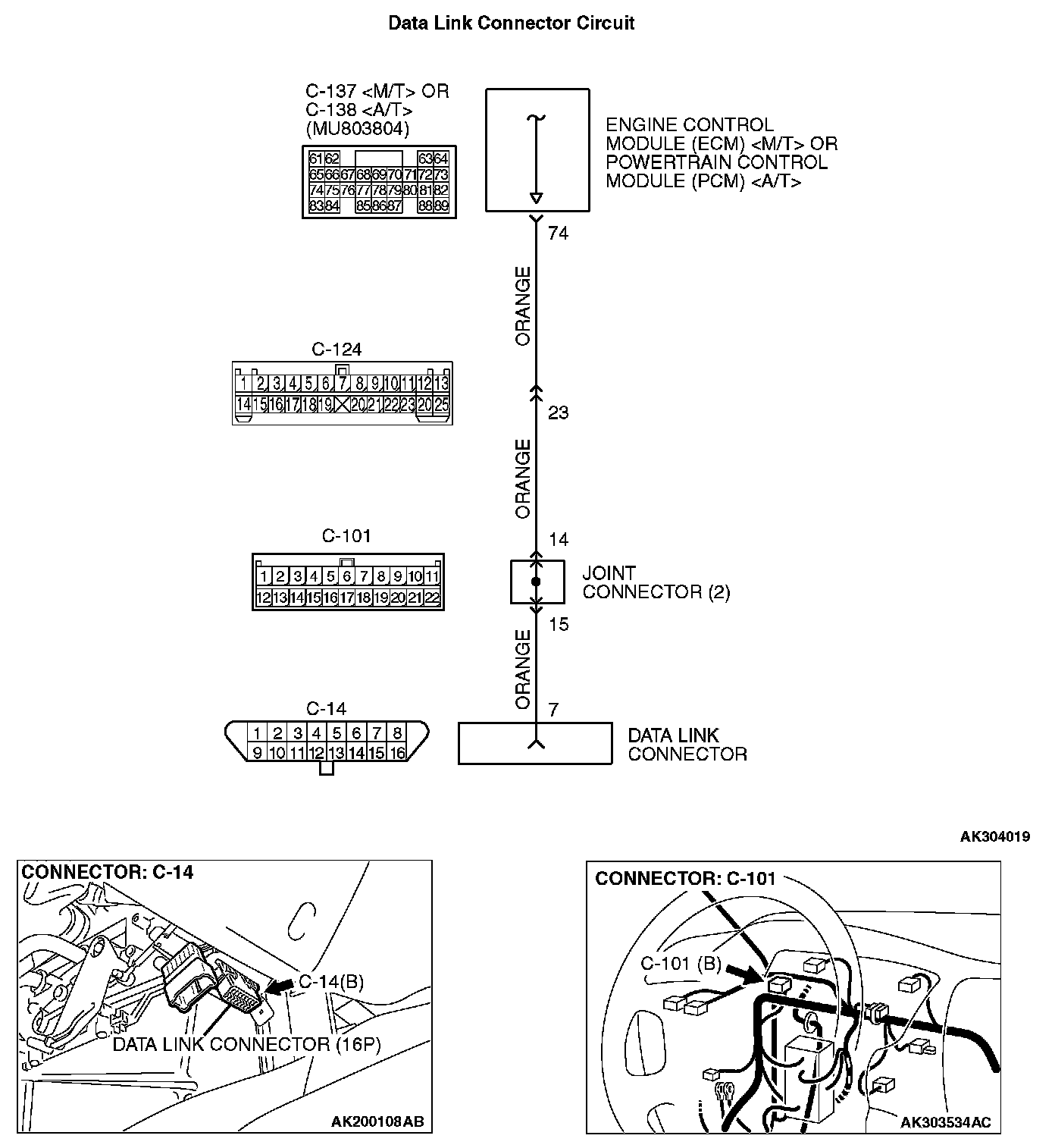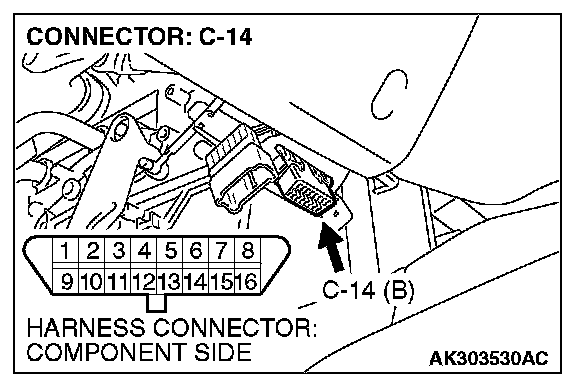 STEP 2. Check for open circuit, short circuit to ground and harness damage between data link connector C-14 (terminal No.7) and ECM connector C-137