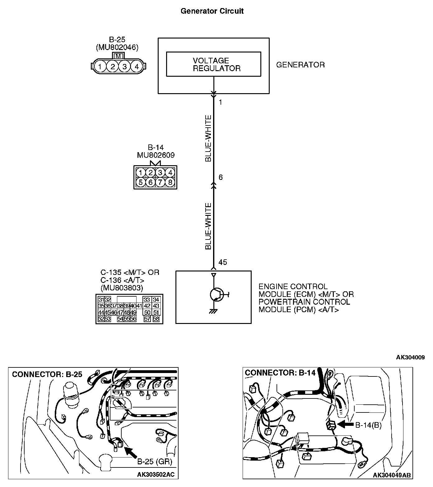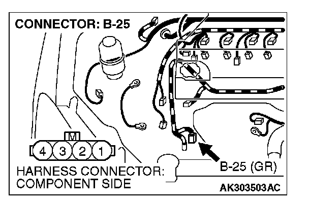 STEP 3. Check connector B-25 at generator connector for damage.