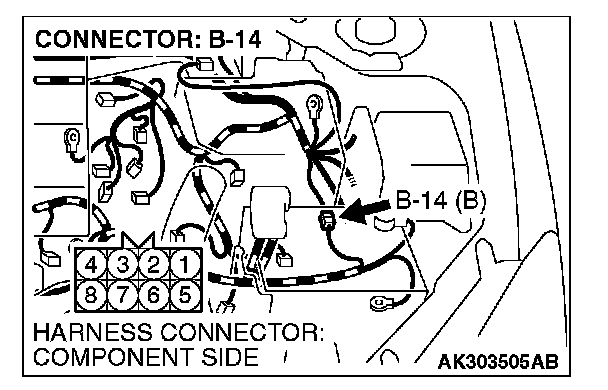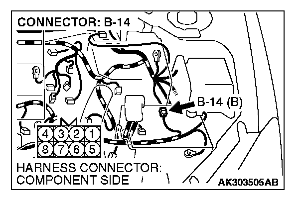 NOTE: Check harness after checking intermediate connector B-14. If intermediate connector is damaged, repair or replace it. Refer to Harness Connector Inspection. Then check that, the malfunction is eliminated.