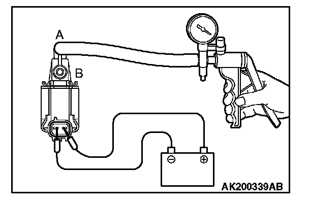 3. Connect a hand vacuum pump to nipple (A) of the EVAP purge solenoid (refer to the illustration).