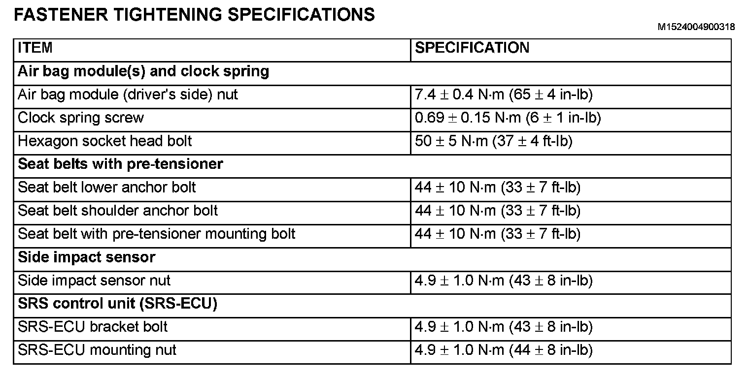 Fastener Tightening Specifications: