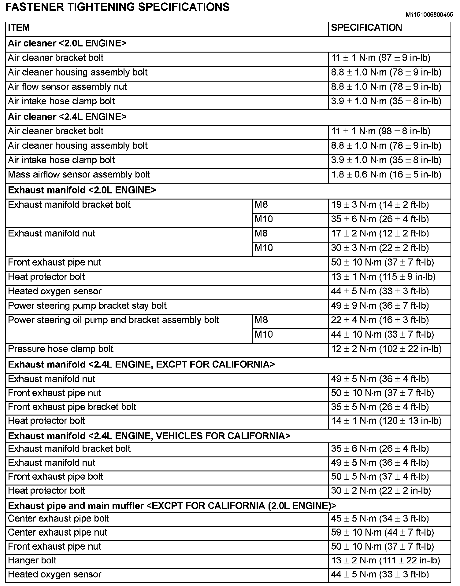 Fastener Tightening Specifications