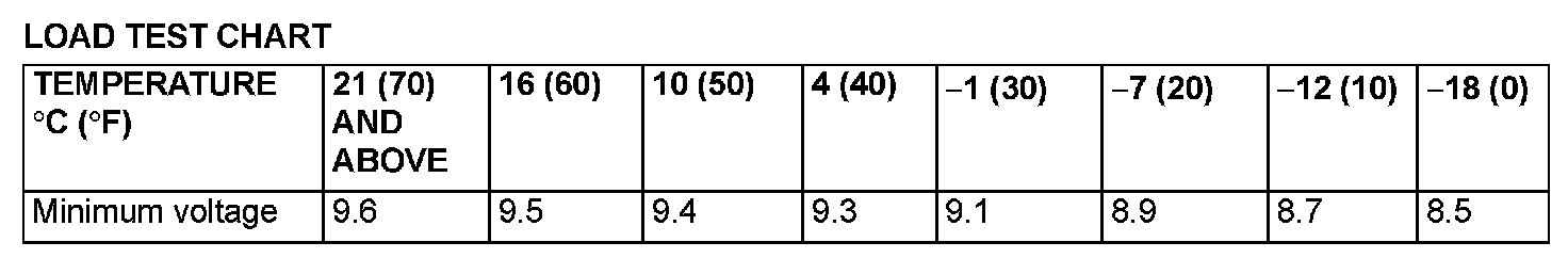 4. Compare the measured value with the minimum voltage. (See LOAD TEST CHART).