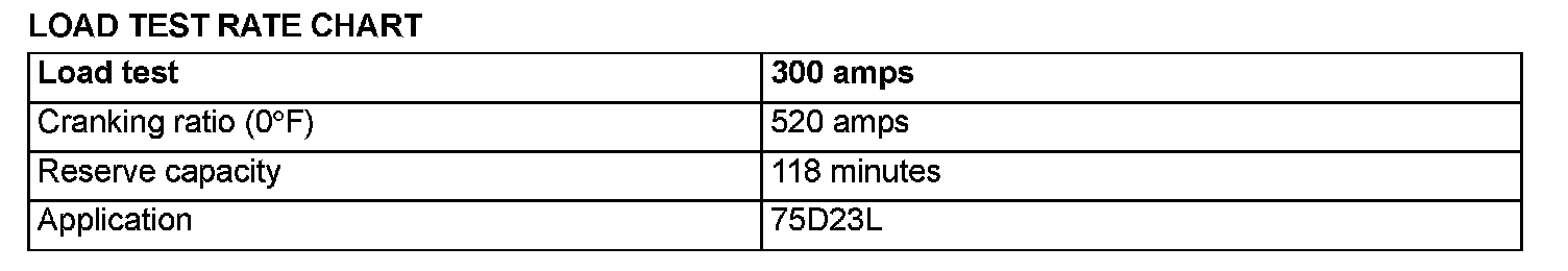 2. Load the battery at the recommended discharge rate (See LOAD TEST RATE CHART) for 15 seconds.