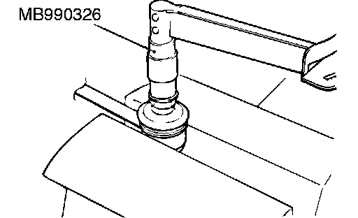 1. After shaking the ball joint stud several times, install the nut to the stud and use special tool MB990326 to measure the breakaway torque of the ball joint.
