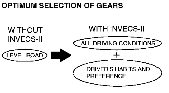 ^ INVECS-II features "Optimum Shift Control," which provides shift timing the average driver perceives to be the optimum timing under any road conditions. "Adaptive Shift Control" adjusts shift timing to match the driving habits and preferences of individual drivers.