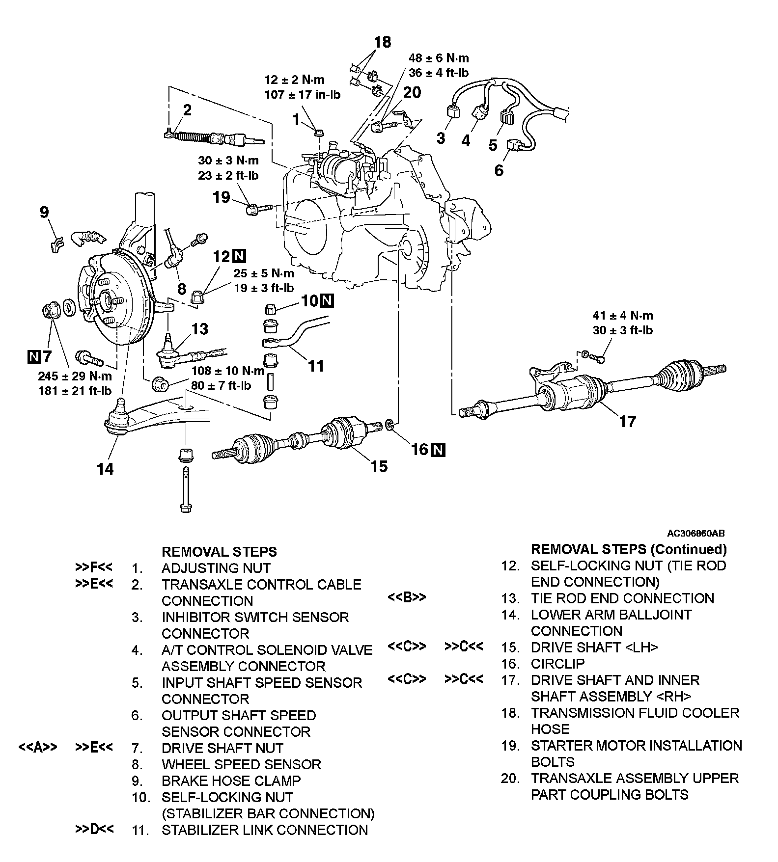 >>E<< DRIVE SHAFT NUT/TRANSAXLE CONTROL CABLE CONNECTION INSTALLATION