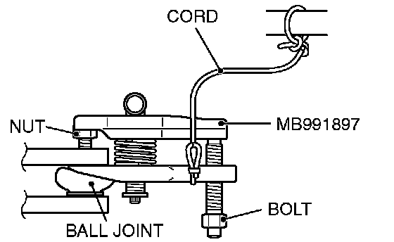 1. Install special tool MB991897 (ball joint remover) as shown in the figure.