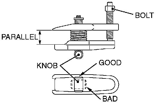 2. Turn the bolt and knob as necessary to make the jaws of special tool MB991897 (ball joint remover) parallel, tighten the bolt by hand and confirm that the jaws are still parallel.