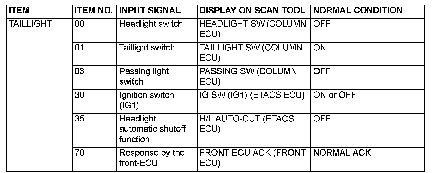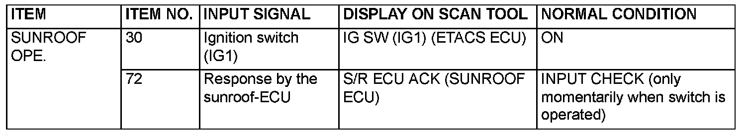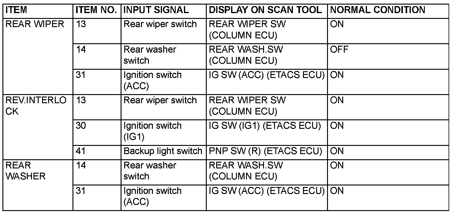 1. The following input signals can be checked by using the scan tool MB991958 (MUT-III Sub Assembly) and the SWS monitor kit.