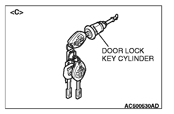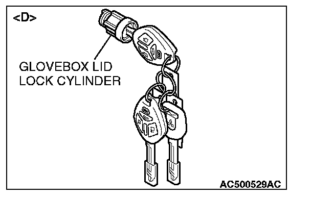 - When replacing the components by the door lock key cylinder of illustration [C] or the glove box lid lock cylinder of illustration [D], do not register the encrypted code with the bar code on the ignition key which is supplied to each lock cylinder simultaneously.
