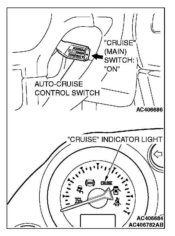 1. Switch "ON" the "CRUISE" (MAIN) switch.