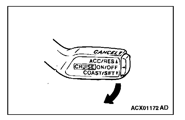 1. The auto-cruise control switch is pulled in the direction of the arrow.