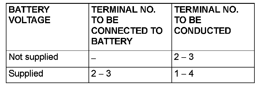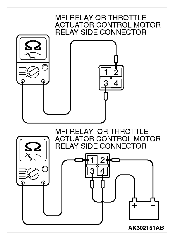 MULTIPORT FUEL INJECTION (MFI) RELAY AND THROTTLE ACTUATOR CONTROL MOTOR RELAY CONTINUITY CHECKInspect the MFI relay and throttle actuator control motor relay for continuity in accordance with the chart shown below.
