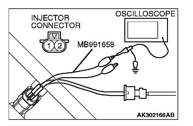 1. Disconnect the injector connector, and connect the test harness special tool (MB991658) between the separated connector. (All terminals should be connected.)
