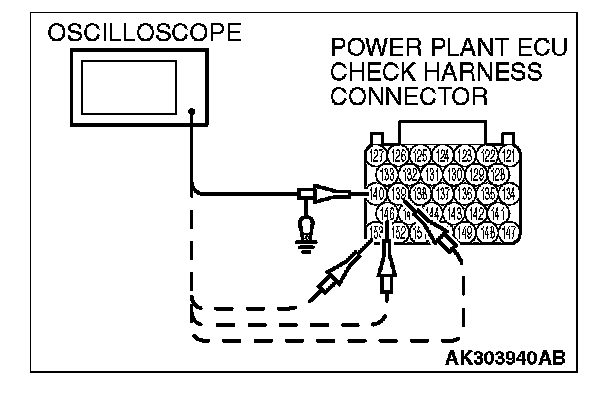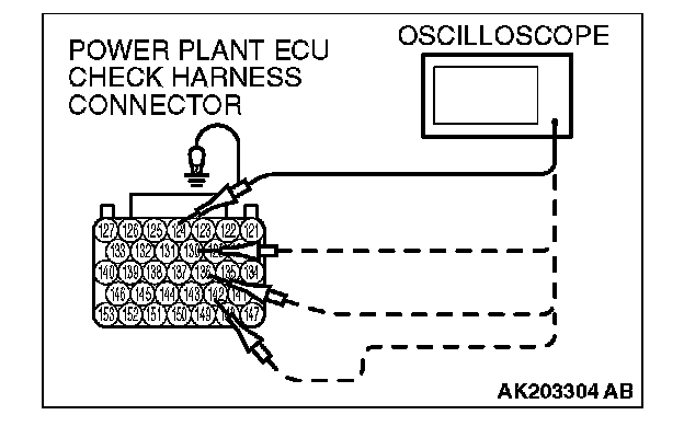 3. Connect the oscilloscope to check harness terminal No. 103. (Check the crankshaft position sensor signal wave pattern.)
