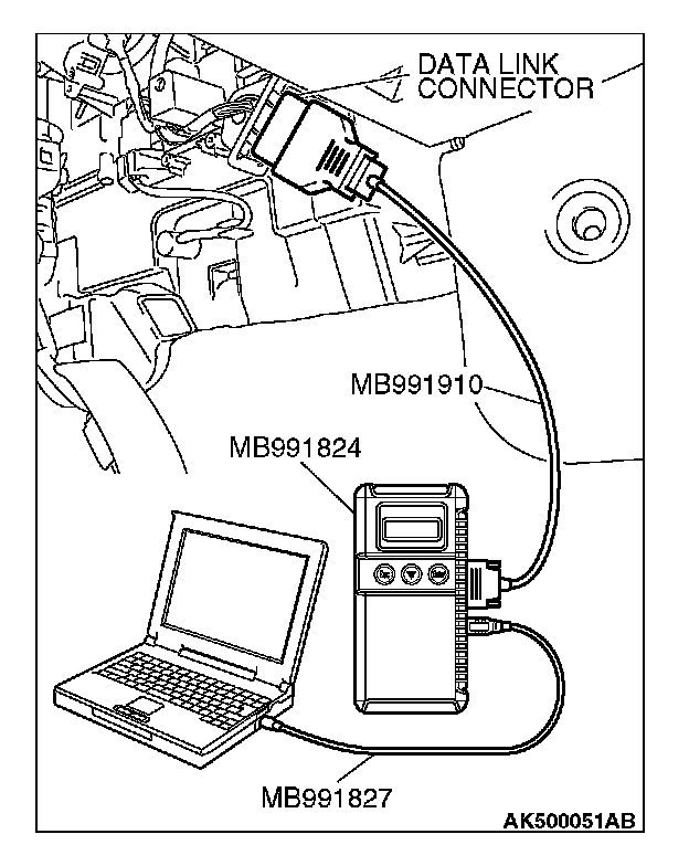 1. Connect scan tool MB991958 to the data link connector.