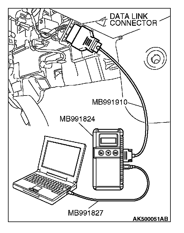 1. Connect scan tool MB991958 to the data link connector.