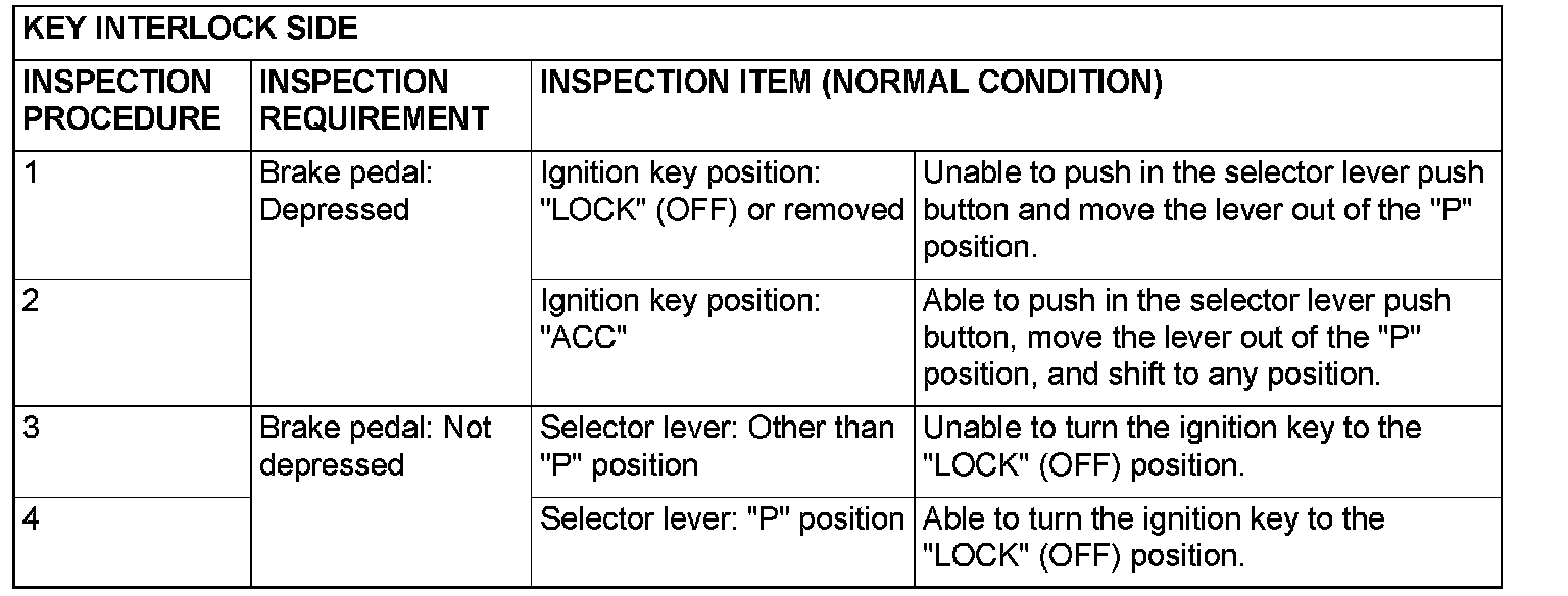KEY INTERLOCK AND SHIFT LOCK MECHANISM CHECKINSPECTION PROCEDURES 1-4: