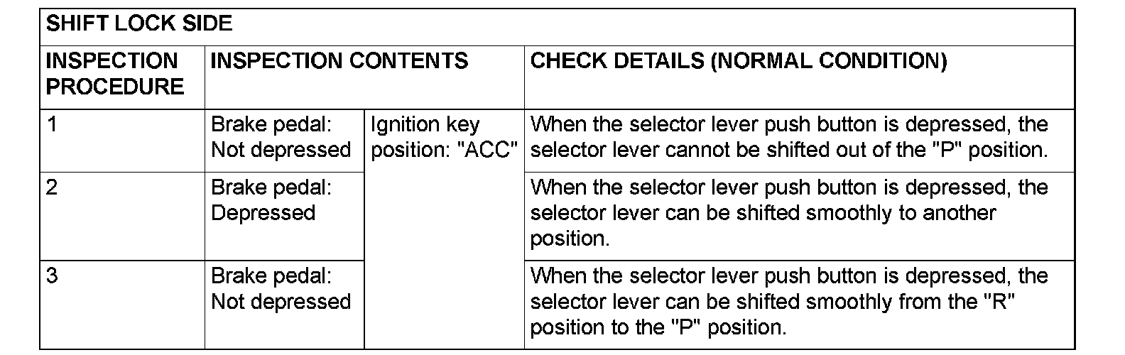 Key Interlock and Shift Lock Mechanism Check