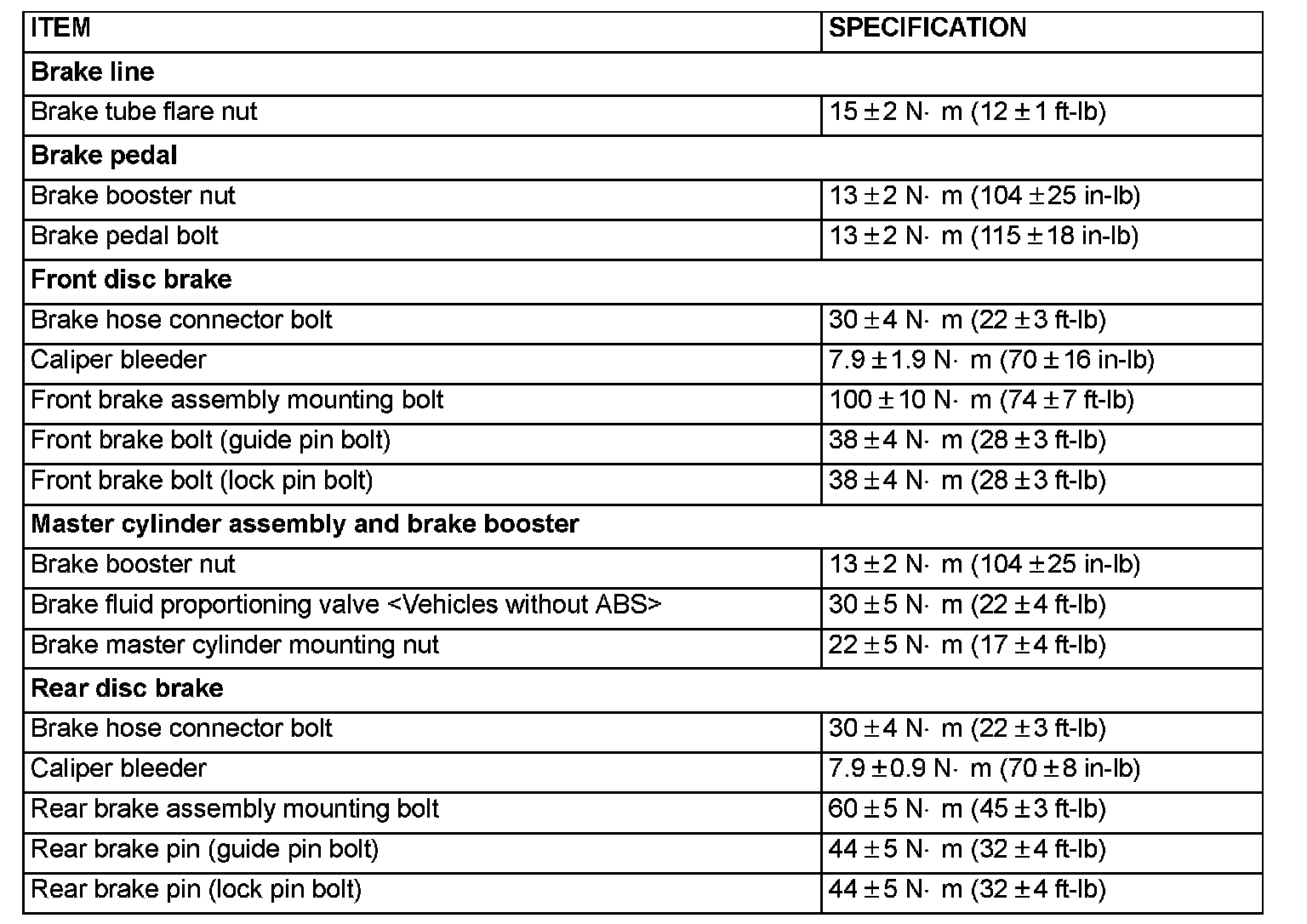 FASTENER TIGHTENING SPECIFICATIONS: