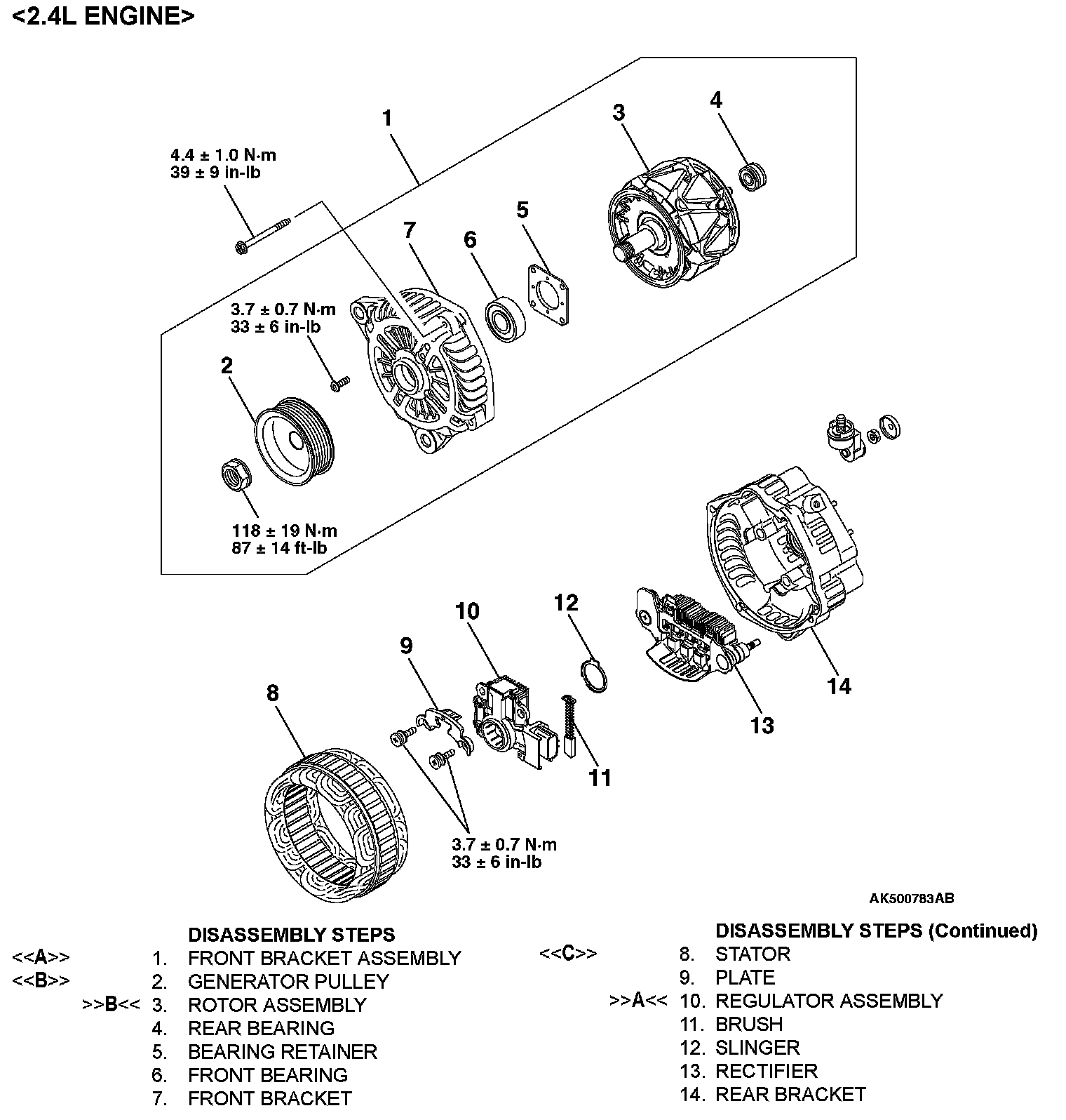 <> FRONT BRACKET ASSEMBLY REMOVAL