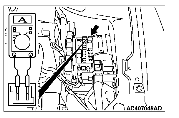 POWER WINDOW OPERATING CURRENT CHECK1. Remove the power window fuse and connect an ammeter as shown in the illustration.