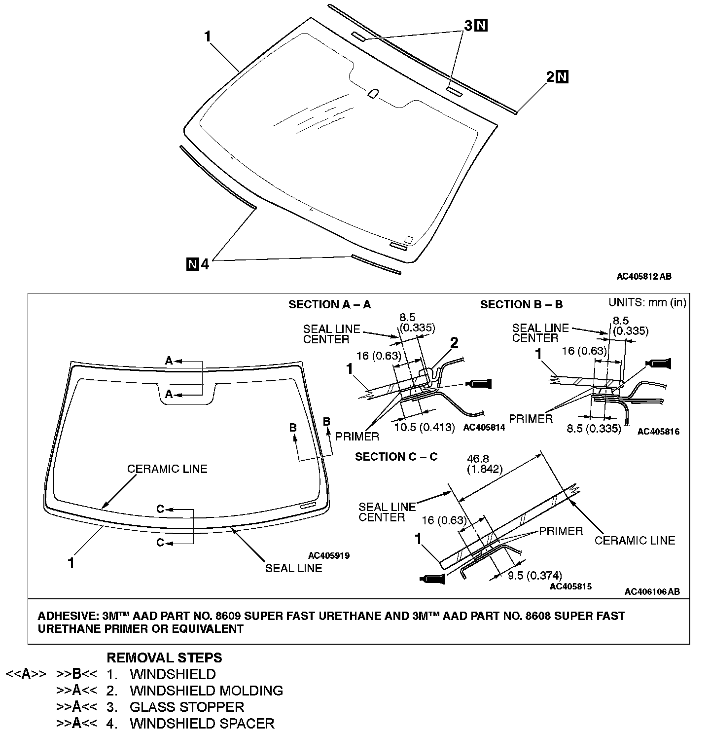 ]]A[[ WINDSHIELD SPACER/GLASS STOPPER/WINDSHIELD MOLDING INSTALLATION